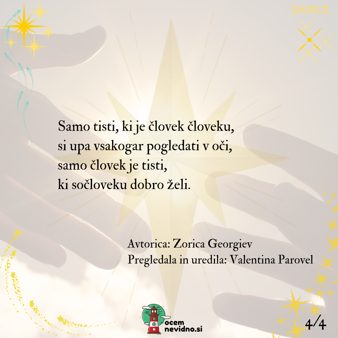 Nikogar solza še ni zlomila, PREJ GA JE NA KOLENA NEŽNO SPUSTILA, mogoče se je po kapljicah, iskrica utrnila.